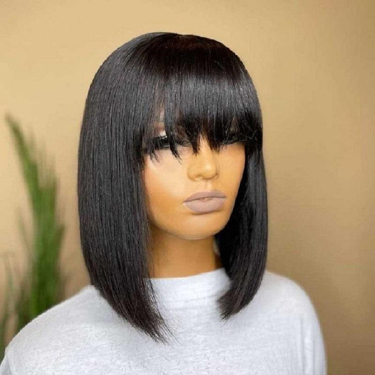 Silky Straight Human Hair 13x4 Transparent Full Frontal Lace Bob Wig With Bangs