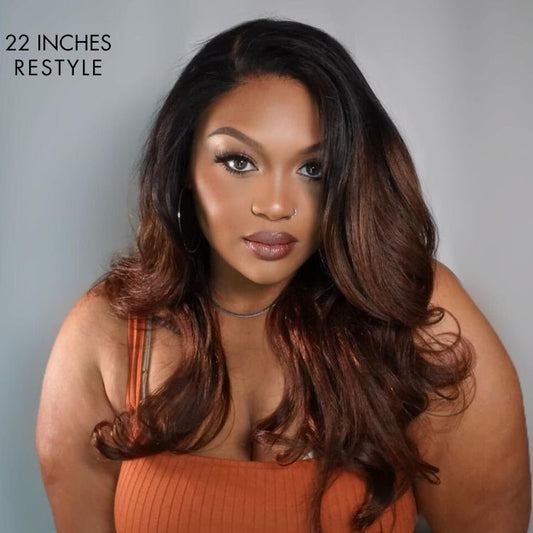 4C Edges | Kinky Edges Black to Brown Ombre Kinky Straight 5x5 Closure Lace Glueless Side Part Long Wig