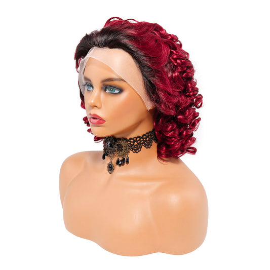 13x1 1B/99J Bouncy Curly Human Hair Wigs 200 Density Lace Frontal Wig Short Curly Wigs For Women