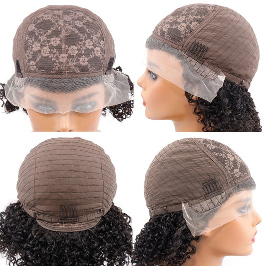 13x1 Lace Front Wig Kinky Curly Bob Wig With 150% Density Natural Black Color Human Hair Short Curly Wigs with Baby Hair