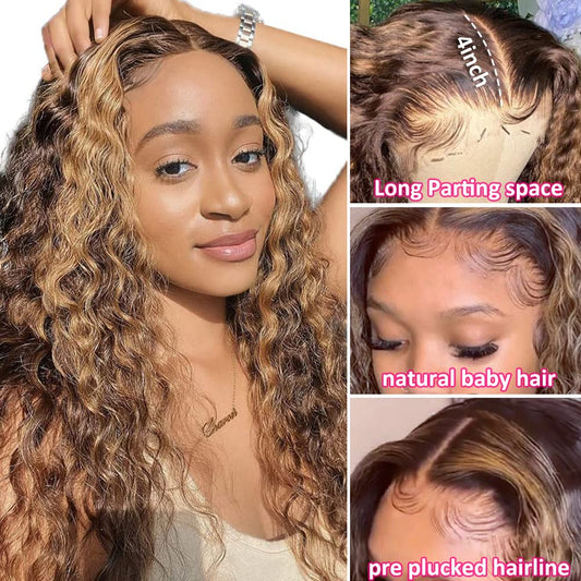 Gorgeous Highlight Color Deep Wave Human Hair 13x4 Lace Front Wig