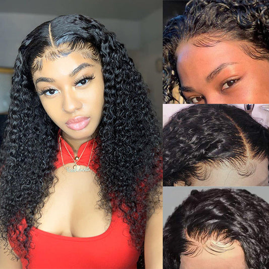 180% Preplucked 4x4 Kinky Curly Lace Front Human Hair Wigs With Baby Hair Lace Closure Wig