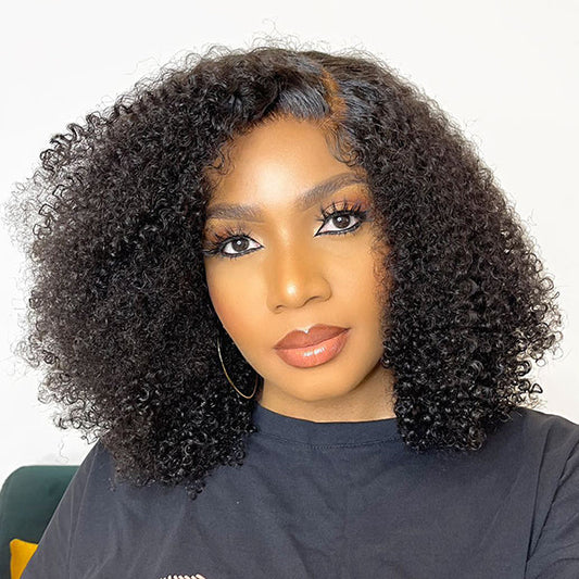 Afro Kinky Curly 5x5 Closure Lace Glueless S Part Shoulder Length Wig 100% Human Hair