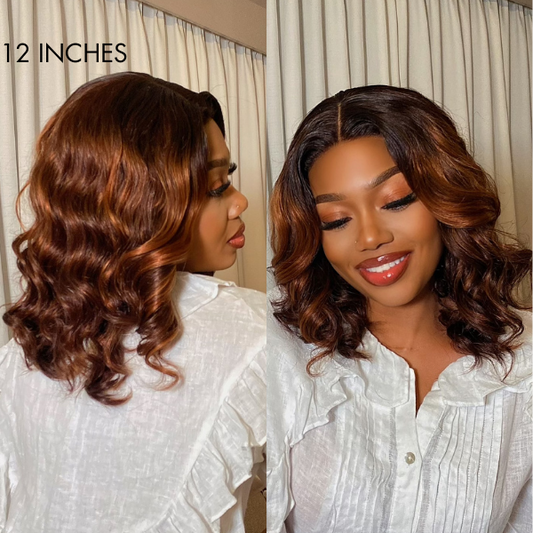 Elegant Brown Ombre Loose Wave Minimalist HD Lace Glueless Short Wig 100% Human Hair