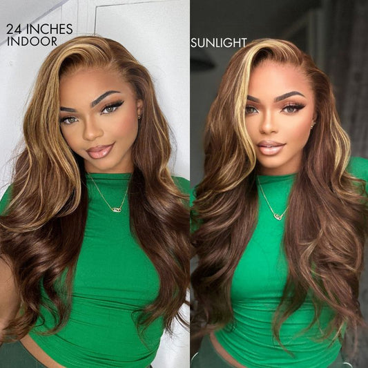Honey Blonde Highlight / Natural Black Loose Body Wave Glueless 13x4 Lace Front Wig