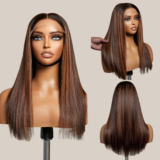 Classic Copper Ombre Highlights Silky Straight Glueless 5x5 Closure Lace Wig