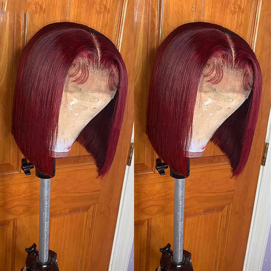 Burgundy Color Straight Human Hair Wig Pre-Plucked Hairline 99J 4x4 Lace Closure Bob Wig