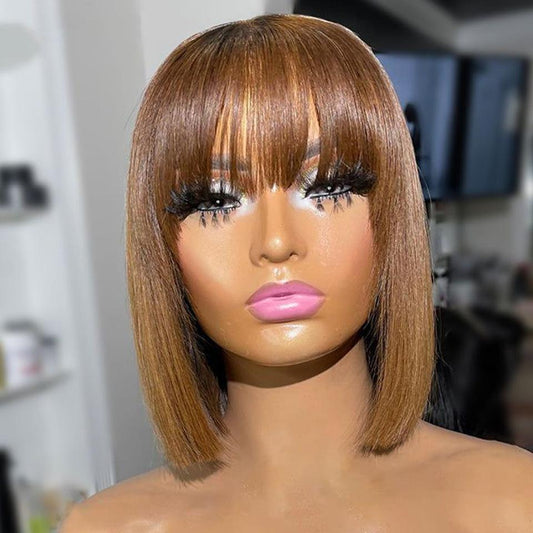 Highlight Color Human Hair Bob Wig With Bang Ombre Colored Cheap Machine Made Wigs