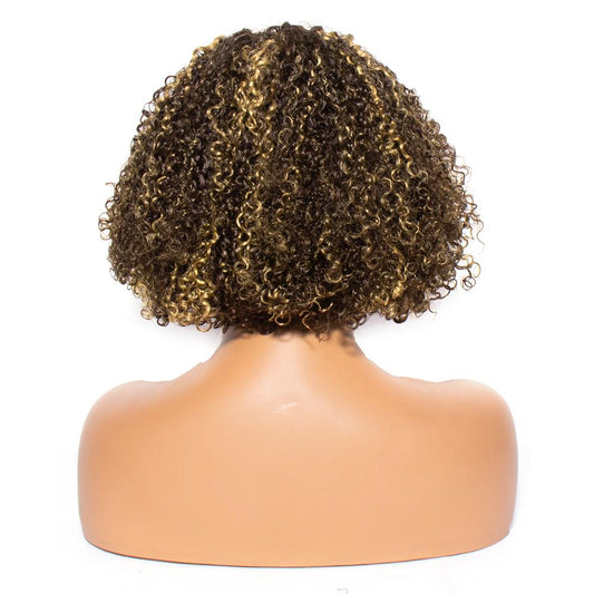 Kinky Curly T-Part Lace Bob Wig P4/27 Highlight Color Human Hair Wig