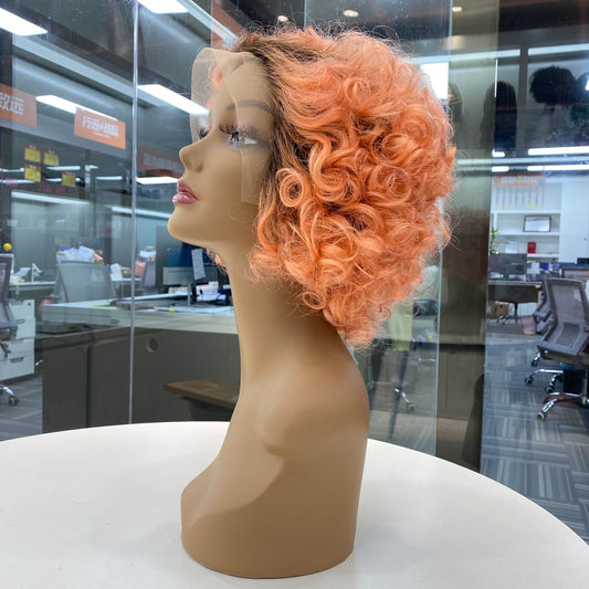Ombre Ginger Color Short Pixie Cut Human Hair 13x4 Lace Front Wig
