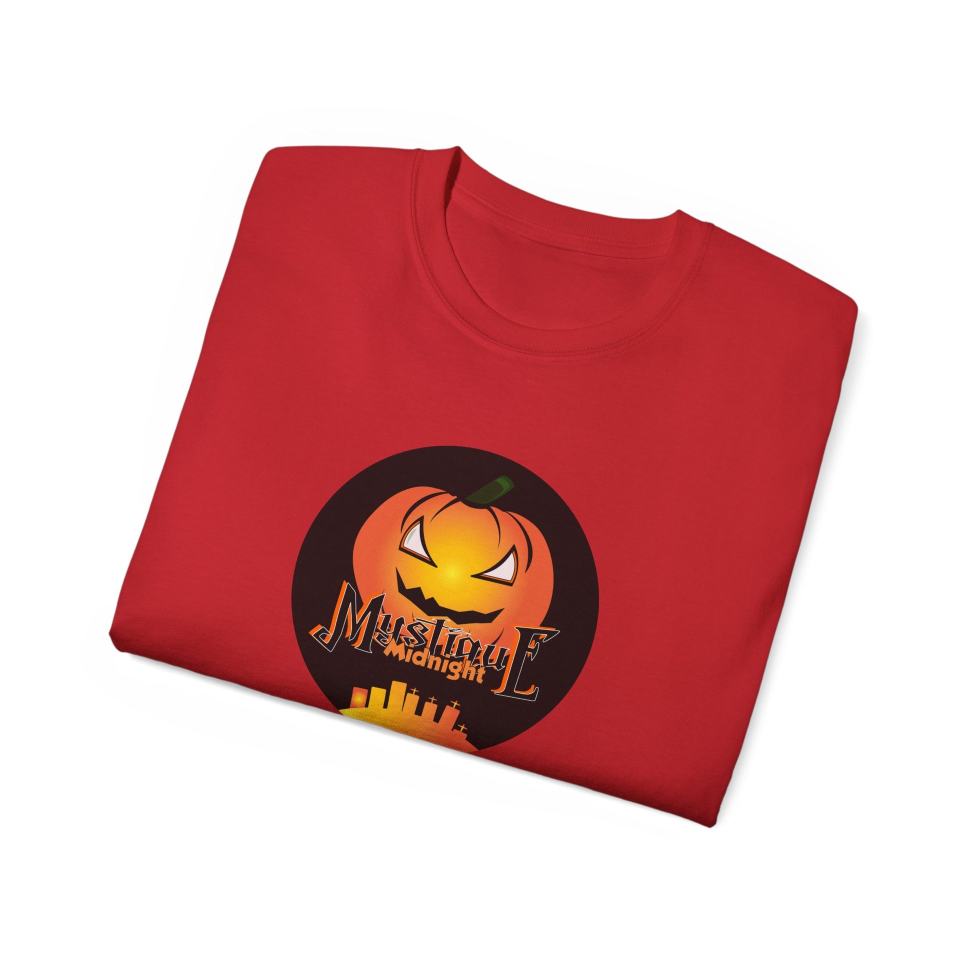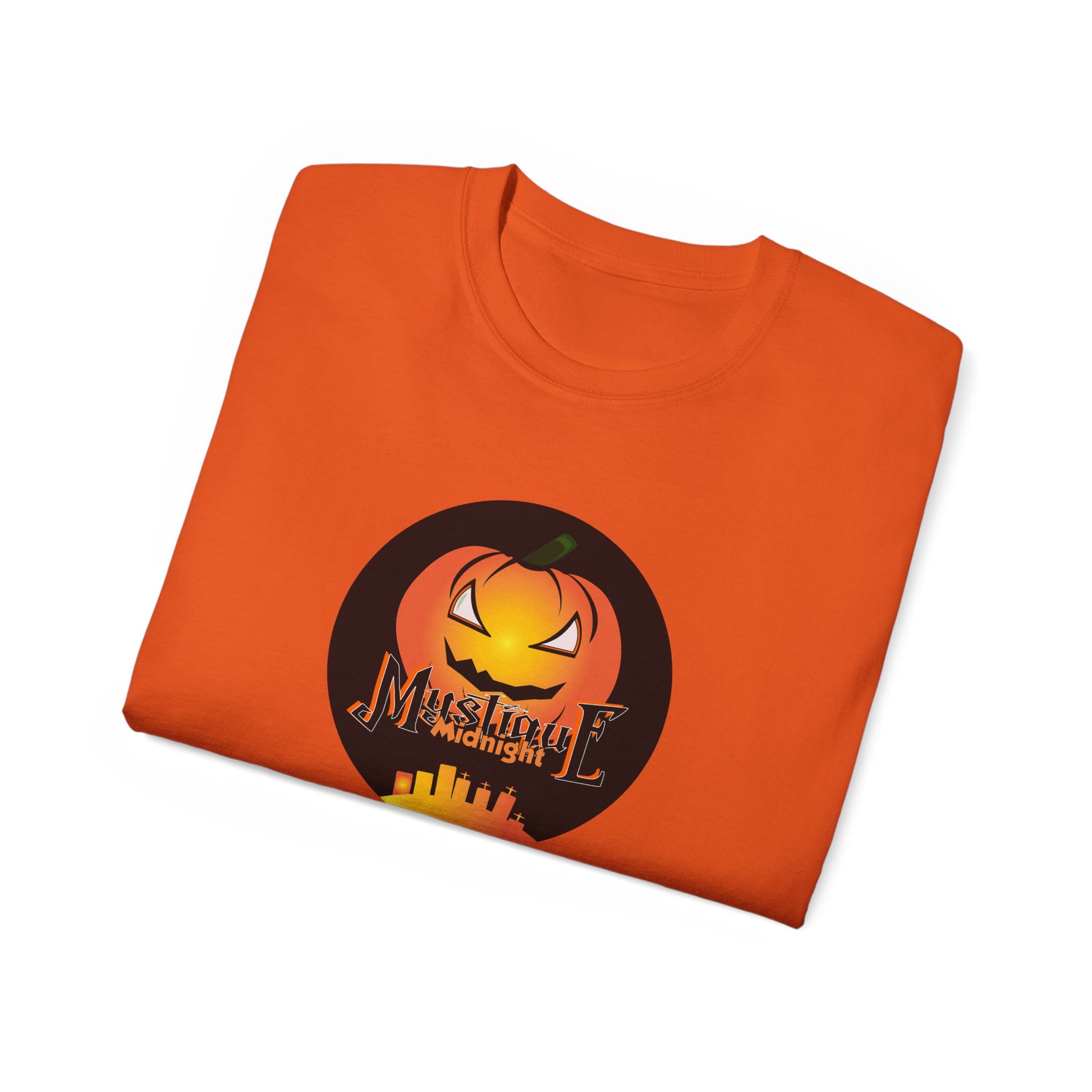 Step into the spooky season in style with the Mystique Midnight Unisex Ultra Cotton Tee. Made with premium cotton for comfort and durability, this Halloween-inspired shirt is perfect for everyday wear or your next festive gathering. With its bold pumpkin logo and unique design, it’s more than a tee — it’s a statement.