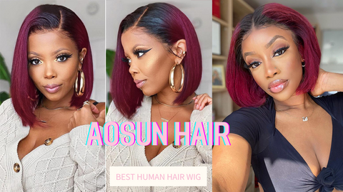 Red Wine Omber Burgundy Color Human Hair Short Bob Wig Pre-Plucked Hairline Bleached Knots 13x4 Lace Front Wig