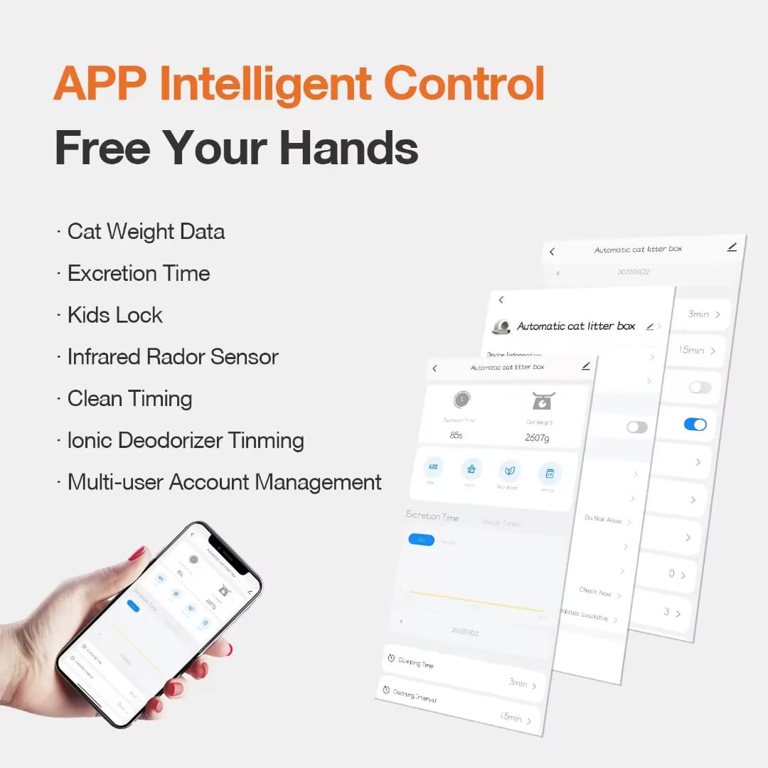 ✔ Automatic Waste Removal – The self-cleaning mechanism keeps the litter box fresh without manual scooping.